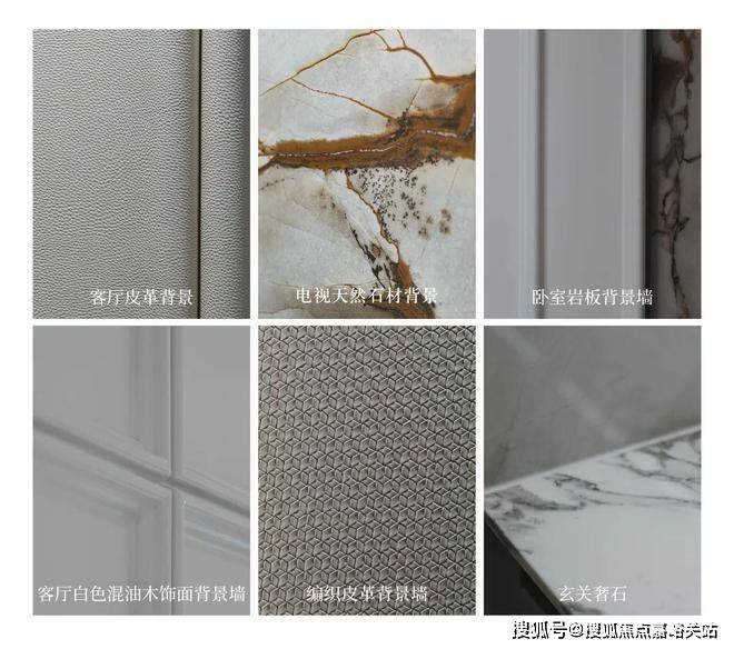 背景墙比别人更多一点。天然石材的电视背景墙,高级大气;编织皮革的客厅背景墙,充满质感;过度用的是白色木饰纹的背景墙,简约耐看;餐厅处又是白色皮革背景墙,大方优雅。整个空间过渡自然,增加了层次感和高级感