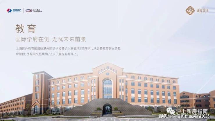 项目周边世外(民办九年一贯制)、华二高中部,周边更有蓝湾幼儿园、诺斯兰顿高中(民办)、奉贤蓝湾学校(对口公立,华二全面托管,九年一贯制)