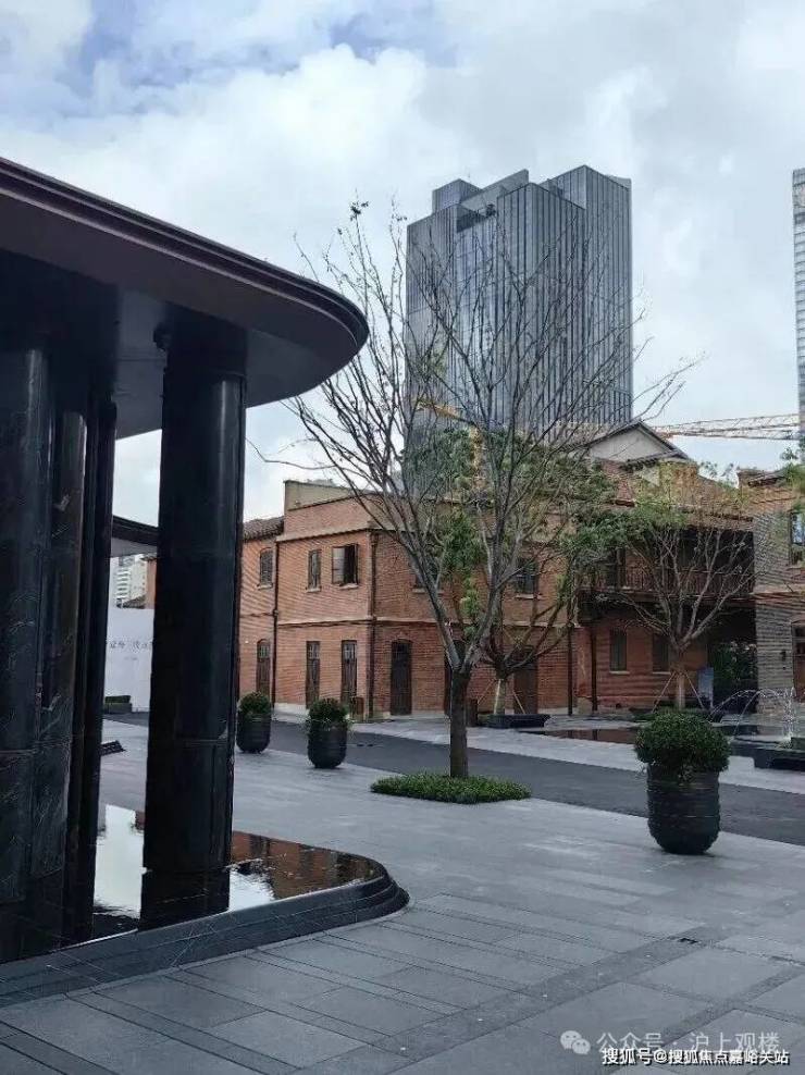高定公区,重塑海派归家史诗;隐奢门庭:社区大门以古琦黑奢石手工锻造弧形幕墙,将珠宝镶嵌工艺融入建筑肌理;