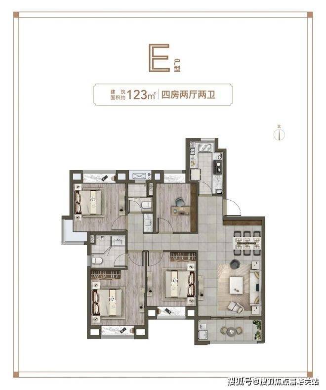 其它的像三开间朝南、全卧飘窗、主卧套房、厨房敞口开阔等,这个户型都做到了。