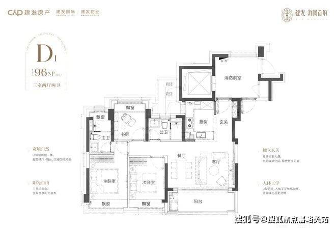 【建发海阅首府】售楼处预约咨询热线:400-882-4198另一套建面约100㎡飞机户型,同样做了三房两卫,户型方正,几乎无过道设计,每一寸空间都没有浪费,舒适不局促。