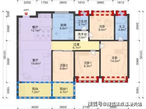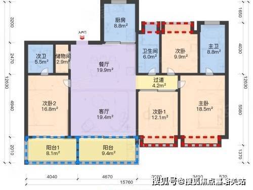 2. 建面约 140㎡ 四房两厅两卫(改善主力,四开间朝南)