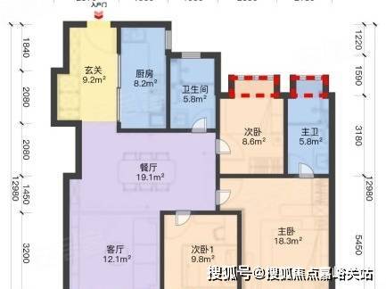 1. 建面约 113㎡ 三房两厅两卫(入门爆款,一梯两户)