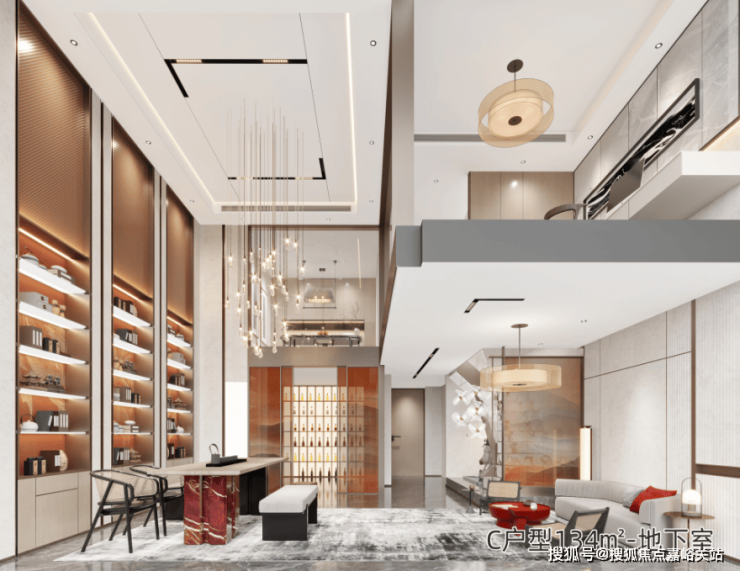 赠送全明地下室,以5.35米阔绰层高搭建夹层,充分体现小面积营造大空间的优势。赋予了生活第N+1种可能,学习、健身房、家庭影院、图书角......经过精心合理的打造,每一处空间都藏着惊喜,盛放更多闲情逸致。