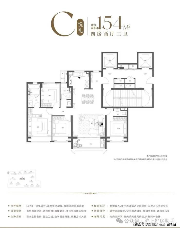 154㎡4房2厅3卫户型图▼