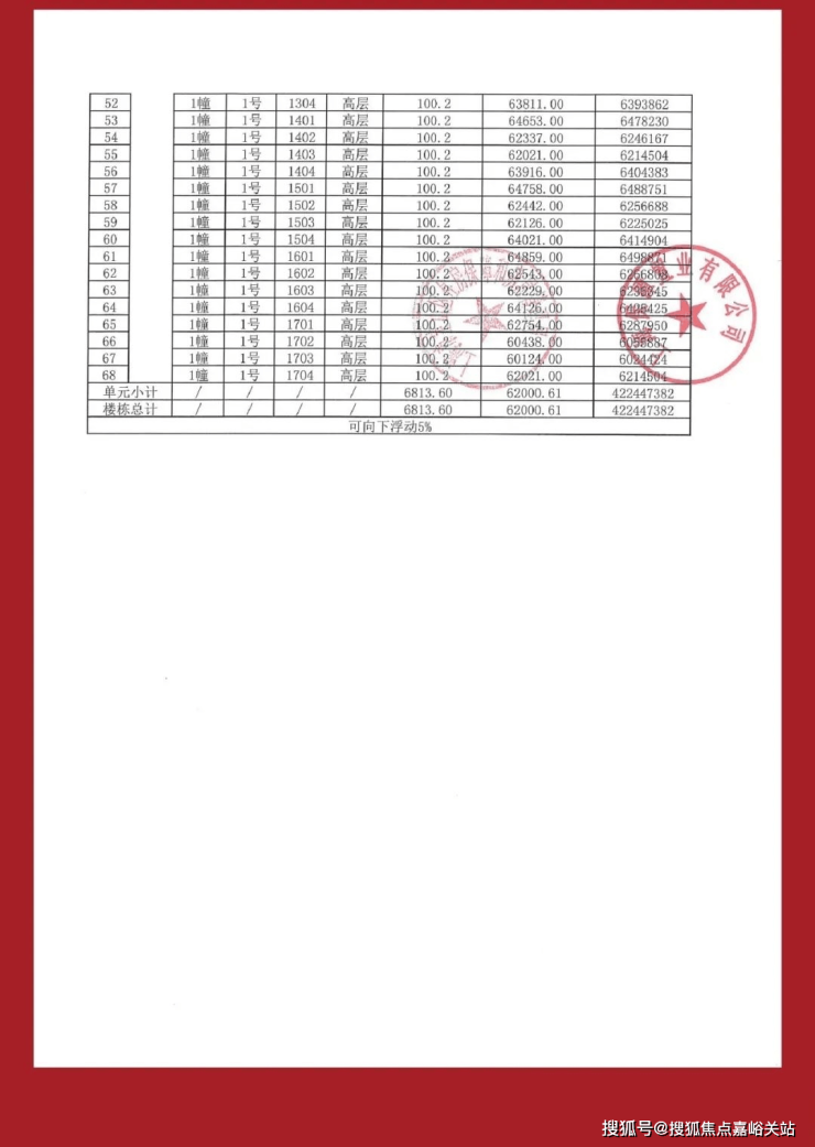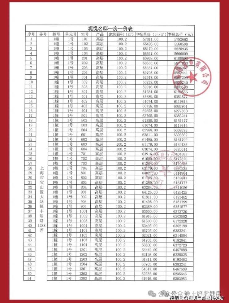 项目一房一价表▼