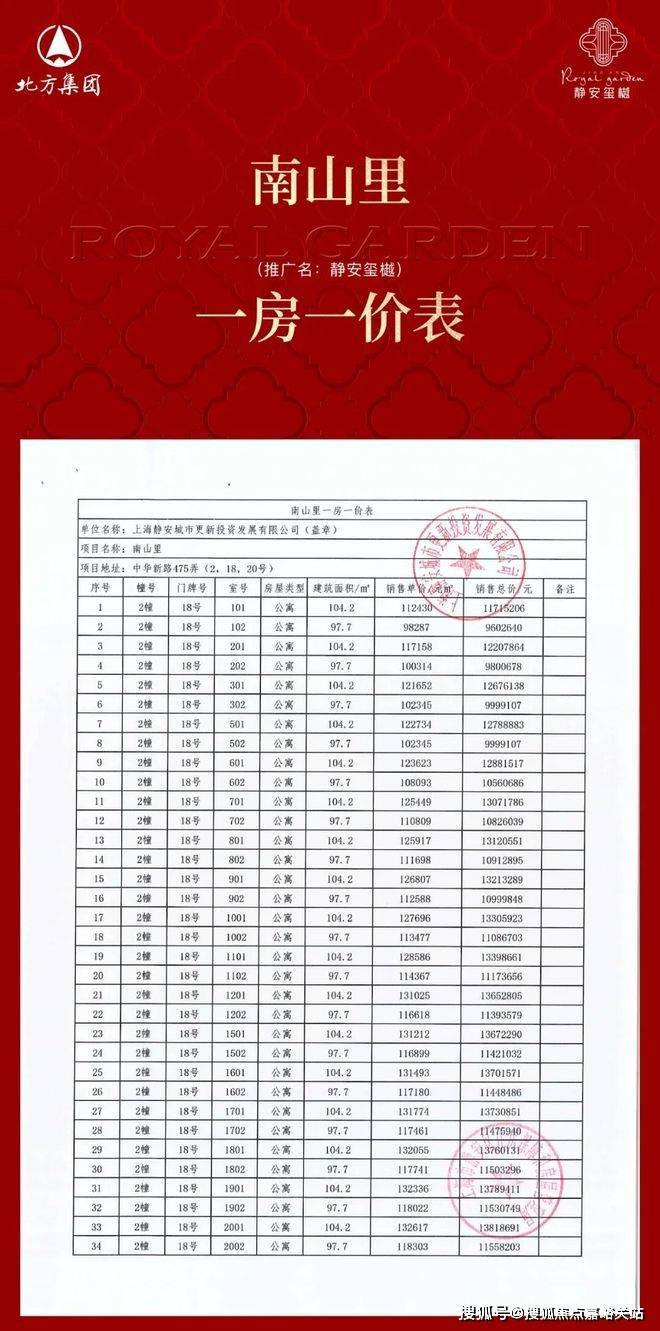 静安玺樾三期一房一价表▼