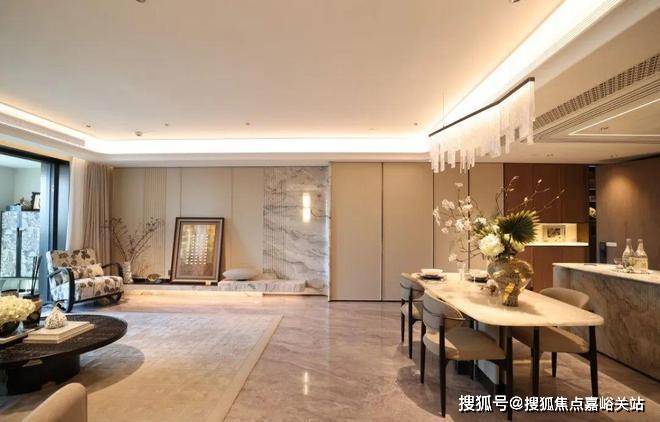 来到建面约112㎡3房2厅2卫样板房,设计主打海派风格,开放式厨房和西餐岛台,卫生间地面拼花,石材台面镀金龙头。标准的三开间户型,设计上将传统的过道改为餐厅空间,将公共区域做大了。