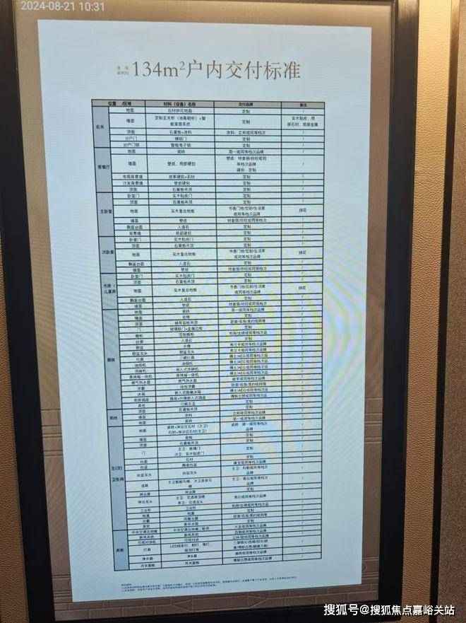 装标,大金的中央空调和地暖,白朗新风。厨房标配博士的三眼灶、油烟机、洗碗机和冰箱,134加配蒸烤一体机;卫生间高仪的洁具和花洒、科勒的龙头。