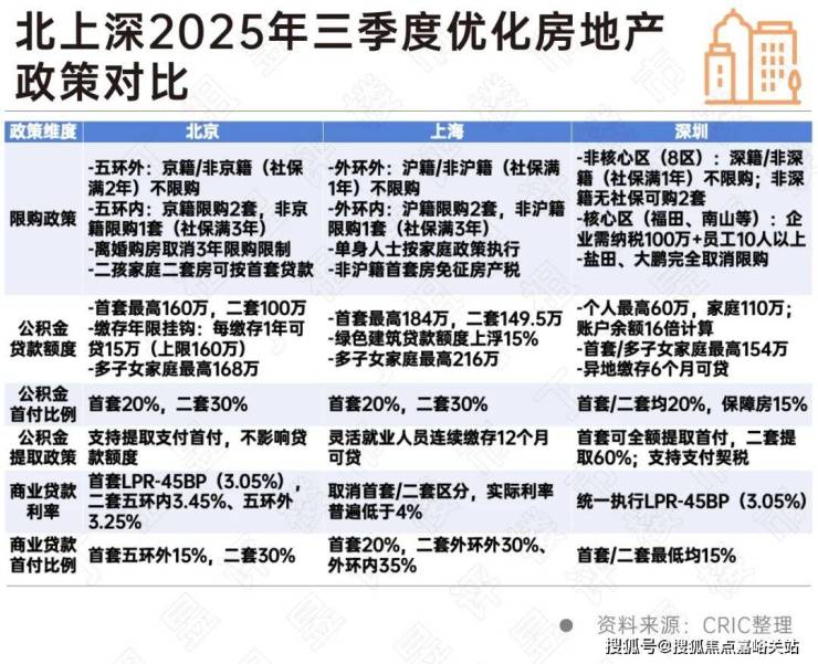 2025年三季度,北京、上海、深圳三座核心城市密集出台房地产需求扶持政策,围绕限购解绑、公积金松绑、商业贷款优化及人才专项支持等维度精准发力,旨在缓解市场调整压力、满足合理住房需求。