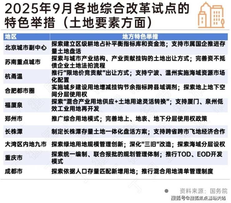 二、土地要素试点从探索到规范,提炼可复制经验:围绕10省市要素市场化配置试点,进一步规范国企低效用地再开发、产业用地类型转换的审批流程;总结杭甬温“限地价竞贡献”、重庆TOD开发等特色模式,形成可推广的试点案例库,为后续全国推广奠定基础。