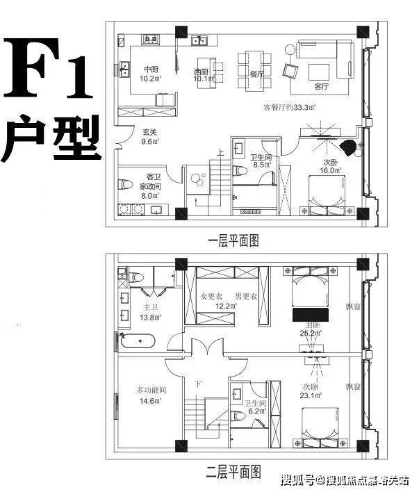 F户型:三套房、中西厨、奢阔主卧带大衣帽间