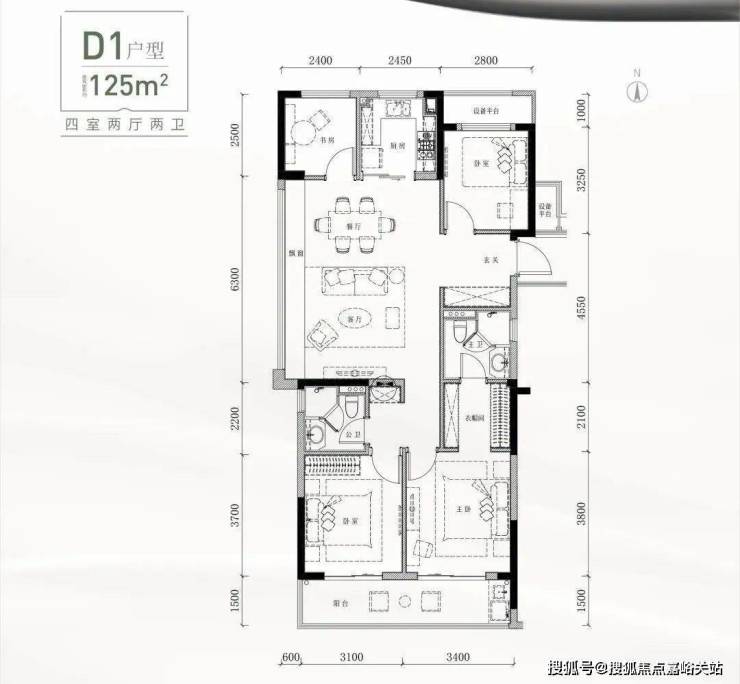 125方三面采光明朗边套,餐客一体大横厅,南向双联大阳台,主卧套房独立卫浴+走入式衣帽间,经典的三卧加一书房设计,三代同堂首选!