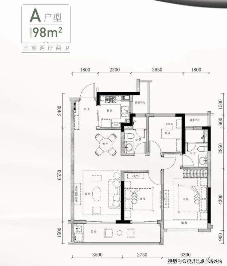 建面约98㎡A户型,三开间朝南,主卧配大飘窗,U型大厨房,约6.2米长阳台晾晒方便,还有同面积段罕见的独立入户玄关,起步即高配。