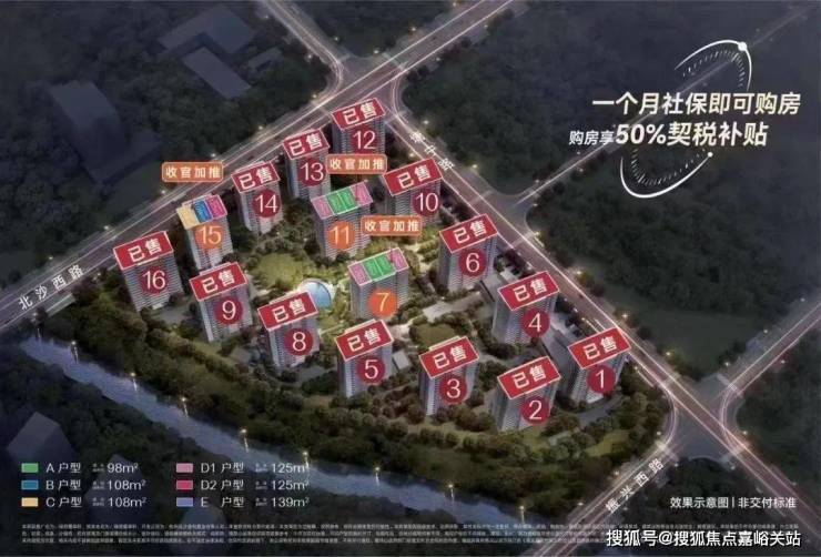 一、体量大, 整个小区占地约 4.73 万方,地上建筑面积约 10.4 万方,规划了 16 栋17层住宅,共 912 户,大体量,也给园区的整体设计提供了更多空间;