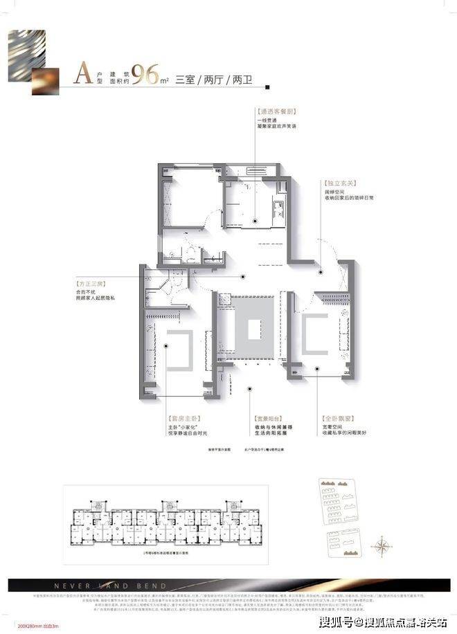 建面约96㎡精质三房,一步到位舒适人居:该户型方正格局、南北通透无连廊,既容纳二人世界的浪漫,也可将三口之家的幸福一并珍藏。
