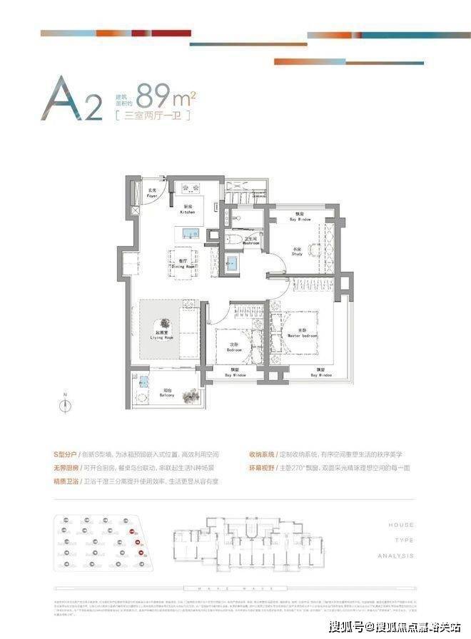 建面约89㎡3房户型:东边套主卧配置约270°双向采光飘窗、S墙设计,主力总价仅约450万级,首付约90万起!招商时代潮派售楼处电话☎:400-8266-670✅✅(欢迎致电)