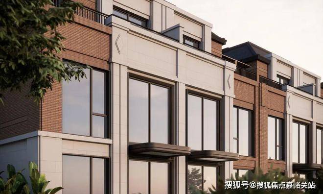 立面沿袭了嘉佩乐酒店的红砖元素,腰线运用深古铜色铝板,提取山墙、几何装饰等里弄建筑符号,以独具海派文化底蕴的红砖造艺,延续墅居经典三段式立面结构。