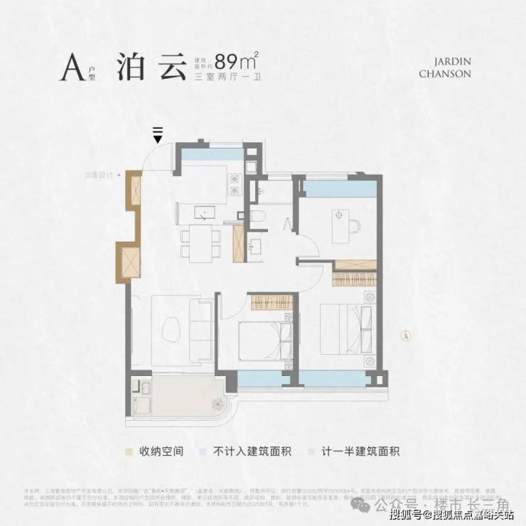建面约89㎡3房2厅1卫▼