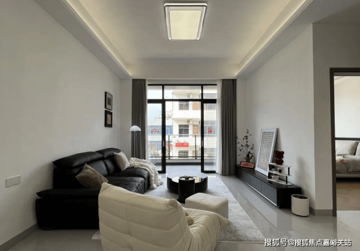 而两个儿子居住的3楼和4楼,同样也是灰地白墙,只不过吊顶局部做了暗藏灯,让空间的氛围感更好一些。