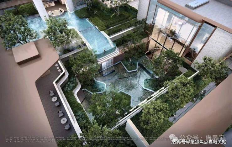 核心景观为峡谷式立体景观,与外部自然植被融为一体。打造约420㎡的垂直社区景观的立体感层次,细节可圈可点。