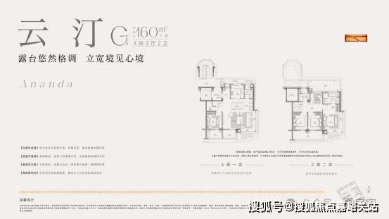 建面约160㎡上叠预计使用率最高约145%、约8.5m横厅双阳台、南北通透主卧套房。