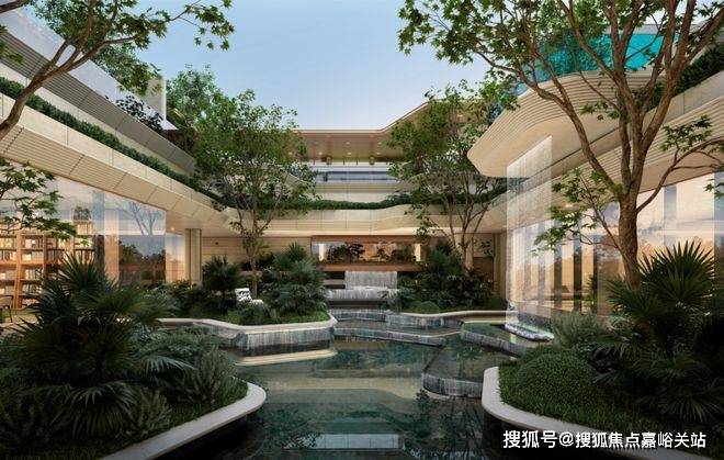 •下沉峡谷:约420㎡丰富层次立体下沉庭院,区域首现悬浮水池,搭配4.3米飞瀑,塑造沉浸式度假感受。