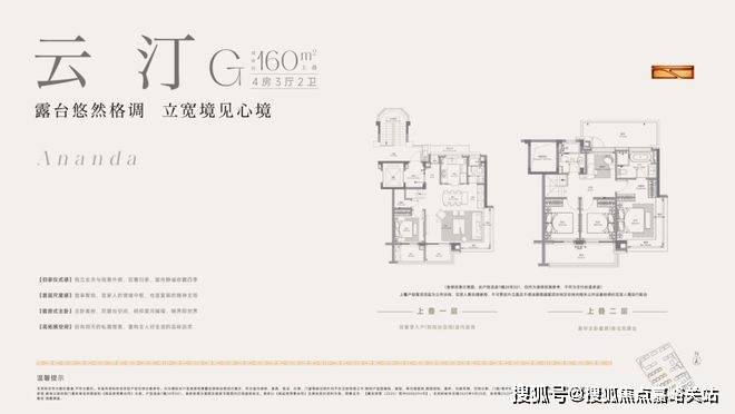 建面约160m上叠,4房2厅3卫,共计约38套,上叠的户型布局其本与下叠一致,附赠南北露台,边套户型的客厅以及主卧同样也是270°飘窗!
