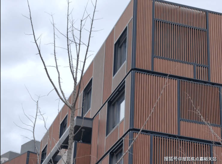沁风雅苑一共由18栋6层的叠加组成,整体呈倾斜镜像状排列,外立面采用木色调,风格极为独特。