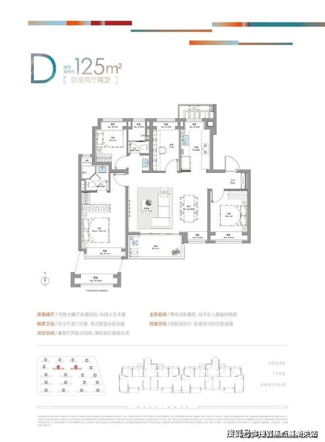 高层:建面125㎡(4-2-2)【554-672万左右】