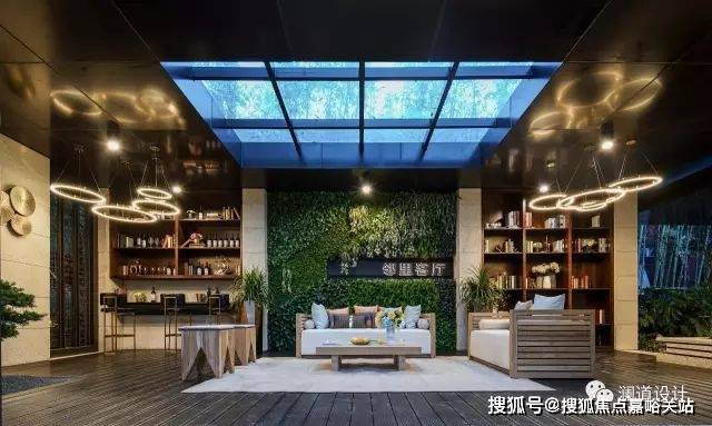 户外会客厅在简洁的造型中也融入了建筑元素,同时考虑了、酒水空间、阅读空间、休闲空间WIFI等,打造室内空间室外化的效果。