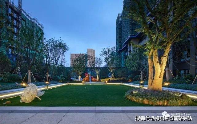 下沉式草坪场地,使场地有了明确的划分,下沉台阶也可以作为坐凳使用,草坪功能全面,包含观赏、休憩、亲子互动、儿童嬉戏、家庭聚会等。