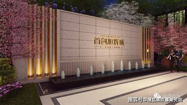 景墙采用与水景、涌泉、反光材质相结合的形式,棱角分明的布局、肌理深刻的边线,高低错落的涌泉,共同打造出一种:品质的、活泼的、灵动的,对景空间。
