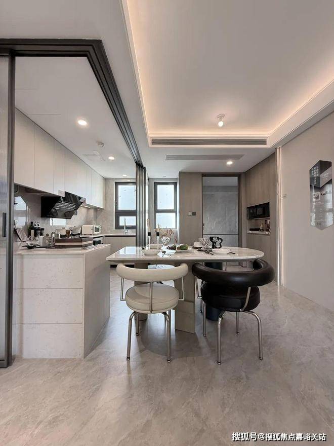 金地嘉峯汇售楼处电话4008569058☑️☑️LDK B一体化设计。通过金属玻璃移门和岛台联动,达成餐厨一体,增加家庭成员互动。烟道外置以及S墙内嵌设计,优化空间布局,提升台面使用感和转角柜使用频率。金地嘉峯汇售楼处电话4008569058☑️☑️
