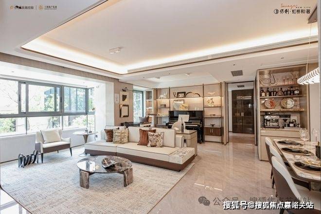 保利虹桥和著售楼处电话:400-8894-986 ◎LDKG大尺度窗墙比:LDKG一体化设计,约 40㎡一体大通厅,南向约3.9 米宽景阳台,连通客厅,可容纳瑜伽、品茶、观景等多种场景;保利虹桥和著售楼处电话:400-8894-986开放式厨房与客厅无缝衔接,让烹饪变成家庭互动的温馨时刻。主卧270°L 型环幕大飘窗,拓宽视野,引入自然光和美景,搭配独立卫浴与奢阔空间,营造私享体验。保利虹桥和著售楼处电话:400-8894-986