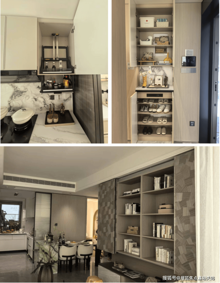 像玄关柜、S墙,厨房的拉篮、吊柜,壁龛……无愧为空间管理大师。