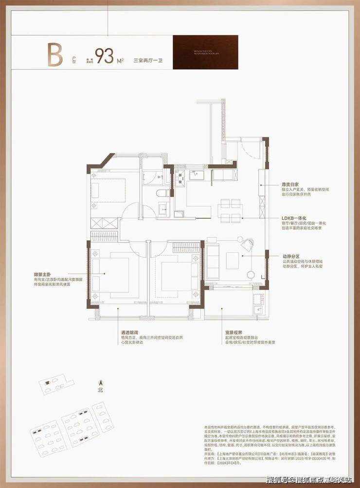 从设计来看,三开间朝南+LDKB一体化+主卧套房+双卫设计,户型方正,通透,动静分离,让生活更加自在从容。