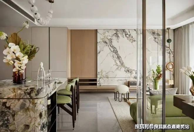 另外项目客厅背景墙不惜成本的采用岩板交付,质感更强颜值更高.