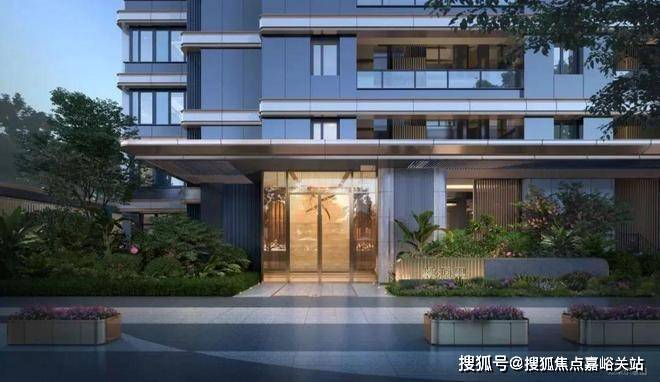 桃源里不仅远眺颜值出众,每一处细节都体现了精致感与仪式感,一个800w级的新盘,竟然还为入户单元设计了 昭示性景墙+专属入户铺装 ,而不是简单地把楼栋号安装在门洞之上