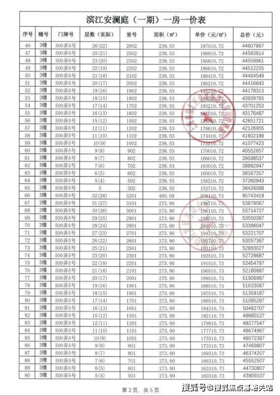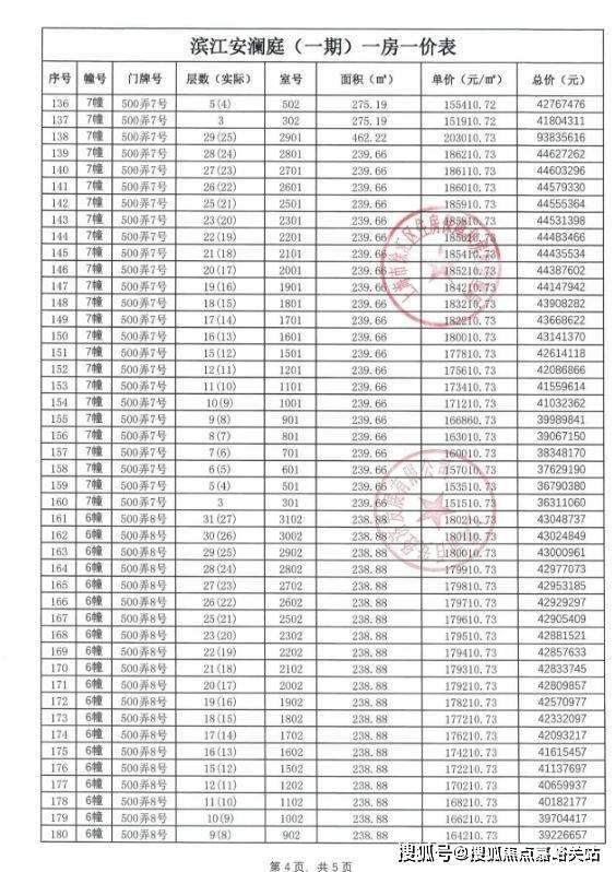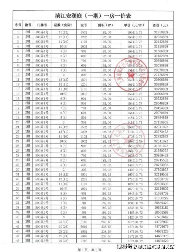 首批次房源一房一价表