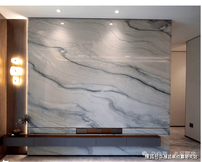 电视背景墙选用带有东方意蕴的万里河山石材,颜值超高!