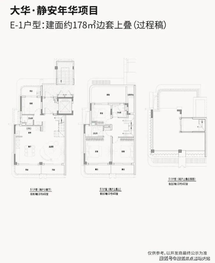 『大华·静安年华』项目采用高低配设计,是由1排高层+3排叠墅的布局,总计175套房源,项目由一栋24层高层和3栋5-6层叠墅组成,高层105套(108至123㎡3房4房)、叠墅70套(180到220㎡),自4层起架于3层商业之上
