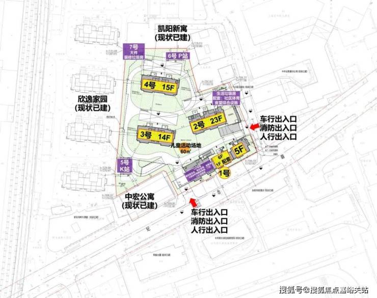 2号楼23层高层,3号楼14层,4号楼15层,2号楼的东北角是生活垃圾房,社区体育配套,食堂综合设施。