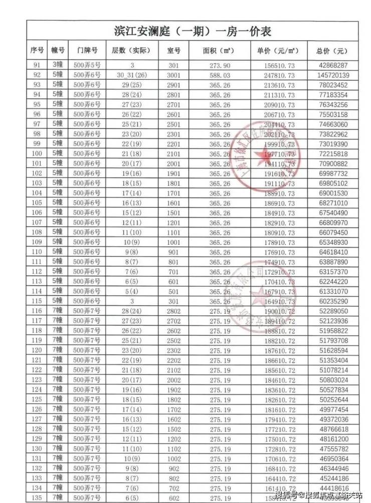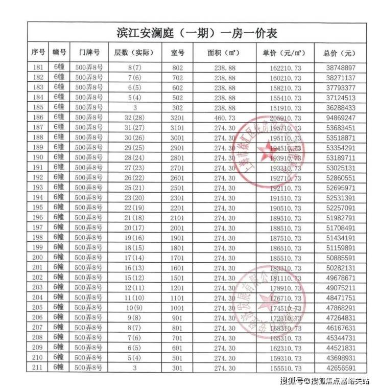 【安澜上海】一房一价表: