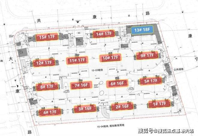 整个社区由4栋16层、10栋17层小高层组成;约2.2的容积率低于市面上常规的2.5容积率的小区。栋距更宽阔,视野无遮挡。