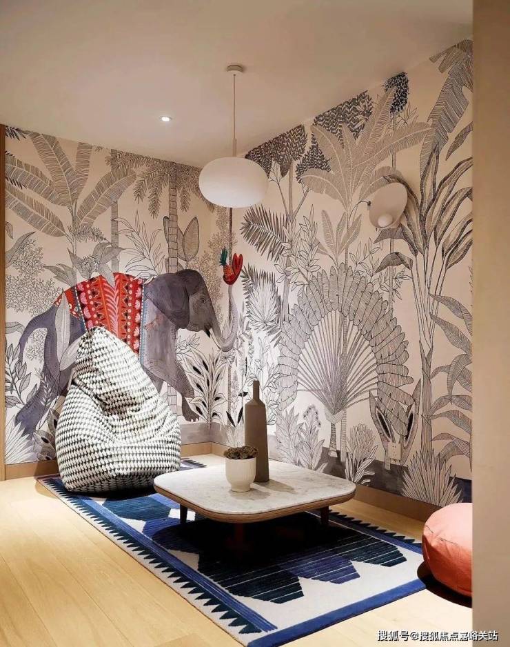 整体素雅的空间用大胆的图案色彩装点,借助壁画、配饰等小物件将多重色彩妆点室内,零层次与情绪跃然而出。