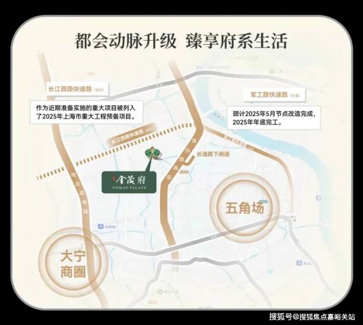 在城市交通路网方面,江湾金茂府同样优势显著。周边拥享中环高架、长江西路快速路、外环高速三横主轴,以及逸仙路高架、南北高架两纵接驳 。
