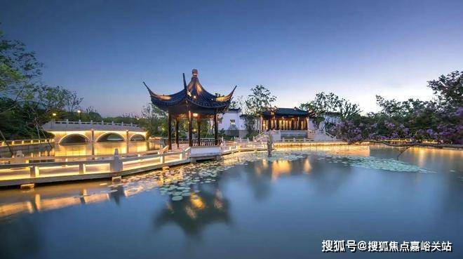璟雲拱桥、山水叠石、六角闲庭,处处皆是惊喜。园中古建,均采用传统木结构建造,尽可能减少现代建筑手法的参与,以期还原最真实的苏式园林。