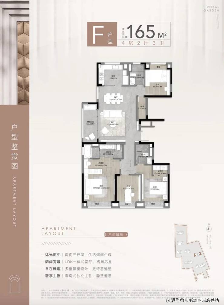 第四个亮点, 是主卧套房设计,自带独立卫生间和大飘窗,增强私密性。