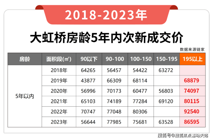 另一方面,小编也统计了链家上大虹桥房龄5年内次新的成交数据。